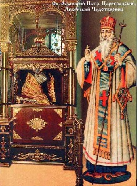 Відтоді нетлінні мощі святішого константинопольського патріарха Афанасія стали предметом шанування і поклоніння вірян усієї православної Русі. Дорогоцінний скарб, вийнятий з-під спуду, не зотлілий під землею, виявився водночас цілющим джерелом для всіх стражденних. Милосердний і велелюбний за життя свого, святитель не полишає своєю допомогою вселенську паству і по смерті своїй. З’являючись багатьом у видіннях, він благословляє, наставляє і лікує вірних синів Христової церкви, які з нелицемірною і ревною молитвою до нього притікають.