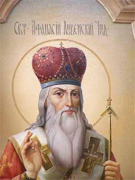 У 1936 р., коли безбожна влада проводила розтин святих мощей, у тодішню столицю України, м. Харків, було привезено, серед інших, і святі мощі святителя Афанасія. З побоювання ускладнення міжнародних відносин, оскільки святитель Афанасій за походженням був грек, і через унікальність його святих мощей влада не наважилася їх знищити. Таким чином, завдяки Всепромислительній Волі Божій, святі мощі святителя Афанасія збереглися неушкодженими в Харківському міському історичному музеї.
