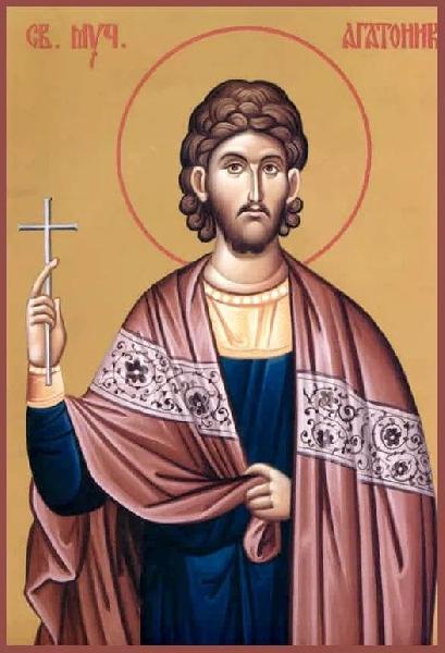 Мученики Агафоник, Зотик, Феопрепий (Боголеп), Акиндин, Севериан, Зинон и прочие приняли смерть за Христа во время правления императора Максимиана (284–305). Мученик Агафоник происходил из знатного рода Гиппасиева, жил в Никомидии. Сведущий в Священном Писании, он обратил к вере во Христа многих язычников, в том числе и самого первенствующего члена Сената (принцепса). Комит Евтолмий, посланный в Понтийскую (Причерноморскую) страну, в местности Карпен распял учеников христианина Зотика, отказавшихся принести жертву идолам, а самого Зотика взял с собой. В Никомидии Евтолмий схватил мученика Агафоника (с принцепсом), Феопрепия, Акиндина и Севериана. После истязаний Евтолмий повел мучеников во Фракию на суд императора, но по дороге, в местности Потама, умертвил мучеников Зотика, Феопрепия и Акиндина, которые не могли далее идти за колесницей правителя из-за полученных ими во время истязаний ран. Мученик Севериан был умерщвлен в Халкидоне, а мученик Агафоник с другими усечены мечом, по приказу императора, в Силиврии.