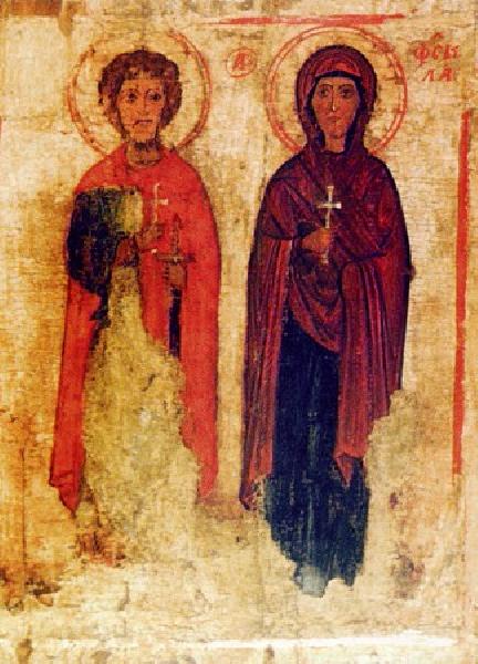 Разговор воинов слышала женщина, у дома которой была раскинута палатка, - это была их мать. Она поняла, что это ее сыновья. Еще не открываясь им, но очень желая с ними не расставаться, она пришла к их начальнику - святому Евстафию просить разрешения следовать с его войском. В нем она узнала своего мужа и в слезах рассказала ему о себе и о двух воинах, которые оказались их сыновьями. Так, по великому милосердию Господа, встретилась вся семья.