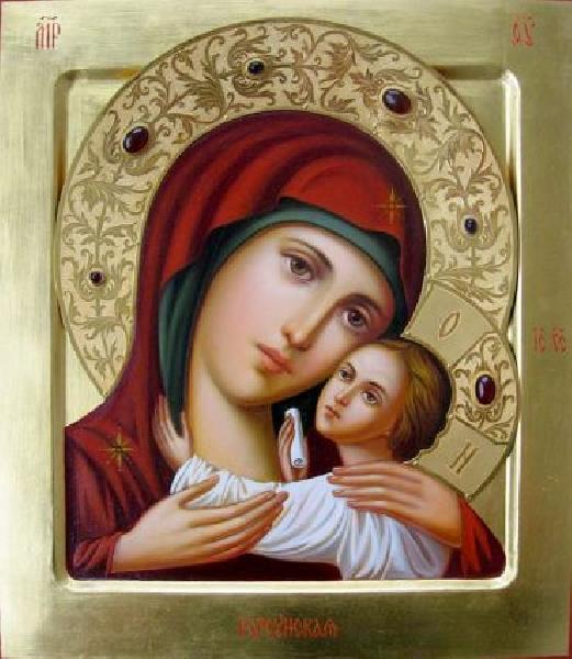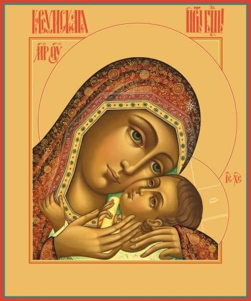 Святий образ був написаний святим євангелістом Лукою і зберігався в Ефесі. 988 року, 9 жовтня, список із цієї ікони приніс із Корсуні до Києва святий рівноапостольний князь Володимир (пам’ять 15 липня) після його хрещення, і він дістав назву Корсунської ікони. Пізніше цю ікону перенесли до Новгорода, а за царя Іоанна Грозного – до Москви, до Кремлівського Успенського собору, де її розмістили за престолом, де вона перебуває й донині. Запрестольна ікона, згідно з дослідженнями, належить до числа маловивчених пам’яток стародавнього іконопису, а перші історичні відомості про неї відносяться до початку XVII століття. Цей образ за написанням схожий з іконами типу “Умиління”. Свята ікона Пресвятої Богородиці стала однією з перших святинь Успенського собору і понад шість століть перебувала в його вівтарі.