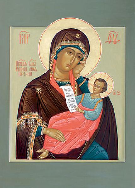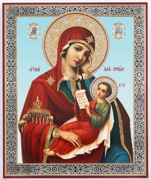 Ты еси́ Пречи́стая Богоро́дице, Покрови́тельница моя́ и непреста́нное ра́дование души́ моея́. Но О! Влады́чице, от наше́дших на мя, одержи́маго ле́пыми беды́, и неуте́шимыя печа́ли изба́ви.