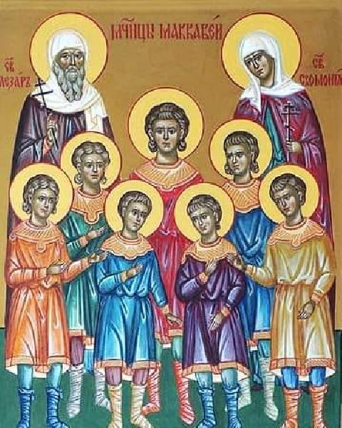 После мученической кончины святого Елеазара были схвачены вместе с матерью семь братьев; так как они принадлежали к знатному роду, то их для испытания отправили к самому царю в Антиохию. Здесь, вопреки прямому запрещению закона, царь заставлял их есть свиное мясо, что почиталось явным знаком отступления от Господа Саваофа, в Которого верили евреи, и приражением к нечестию эллинов, в которое уклонялись боящиеся мук иудеи. Упомянутые семь братьев, ученики пострадавшего священника и учителя иерусалимского Елеазара, хорошо помнили его наставления и пребывали непоколебимы в своем благочестии: они не повиновались царю, ни за что не соглашаясь преступить закон. За это их подвергли долгим мучениям, биению бичами и воловьими жилами. Об их страданиях и безбоязненном дерзновении пред мучителем святое Писание во 2 книге Маккавейской повествует так. Один из братьев, старший возрастом, приняв на себя обязанность ответа, сказал царю: