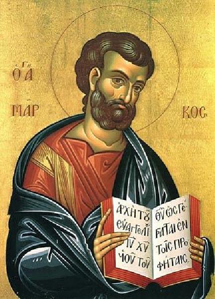 Святой апостол и евангелист Марк, называемый также Иоанн-Марк (Деян. 12, 12), апостол от 70-ти, племянник апостола Варнавы (память 11 июня), родился в Иерусалиме. Дом его матери Марии примыкал к Гефсиманскому саду. Как говорит церковное предание, в ночь Крестных страданий Христа он следовал за Ним, завернувшись в плащ, и убежал от схвативших его воинов (Мк. 14. 51 - 52). После Вознесения Господня дом матери святого Марка стал местом молитвенных собраний христиан и пристанищем для некоторых из апостолов (Деян. 12, 12).