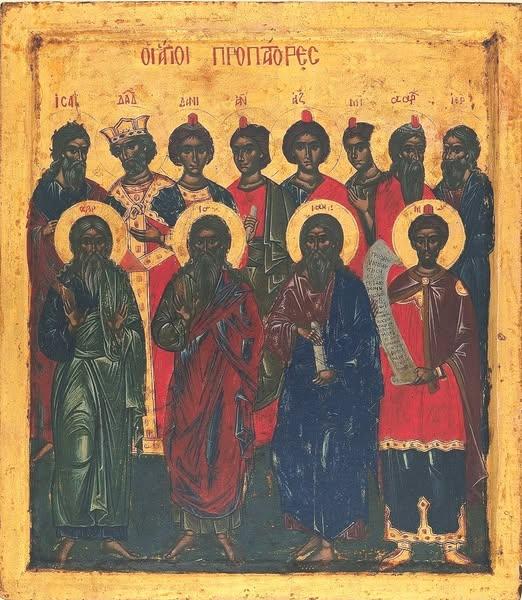 В «Неделю святых праотец (праотцев)» (предпоследнее воскресенье перед Рождеством Христовым) Церковь воспоминает всех древних родоначальников (по-гречески — патриархов) богоизбранного народа и их потомков, от Адама до Иосифа Обручника. Здесь пред нами символически предстает вся история дохристианского человечества. В бесконечном перечне имен особо выделяются ветхозаветные пророки, готовившие людей к принятию Мессии (проповедавшие Христа), и все библейские праведники.