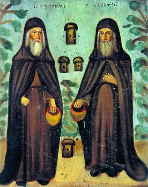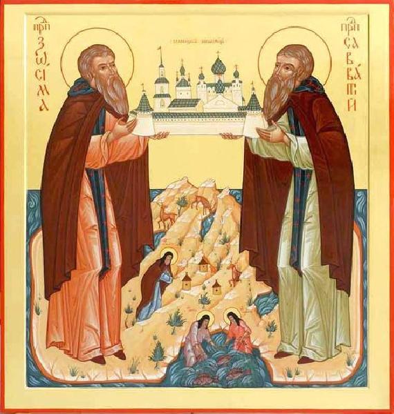 Преподобный Зосима, игумен Соловецкий, великий светильник Новгородского Севера, основатель иноческого общежития на Соловецком острове, родился в Новгородской епархии, в селе Толвуе близ Онежского озера. С юных лет он воспитывался в благочестии, и после смерти родителей Гавриила и Варвары раздал имущество и принял постриг.